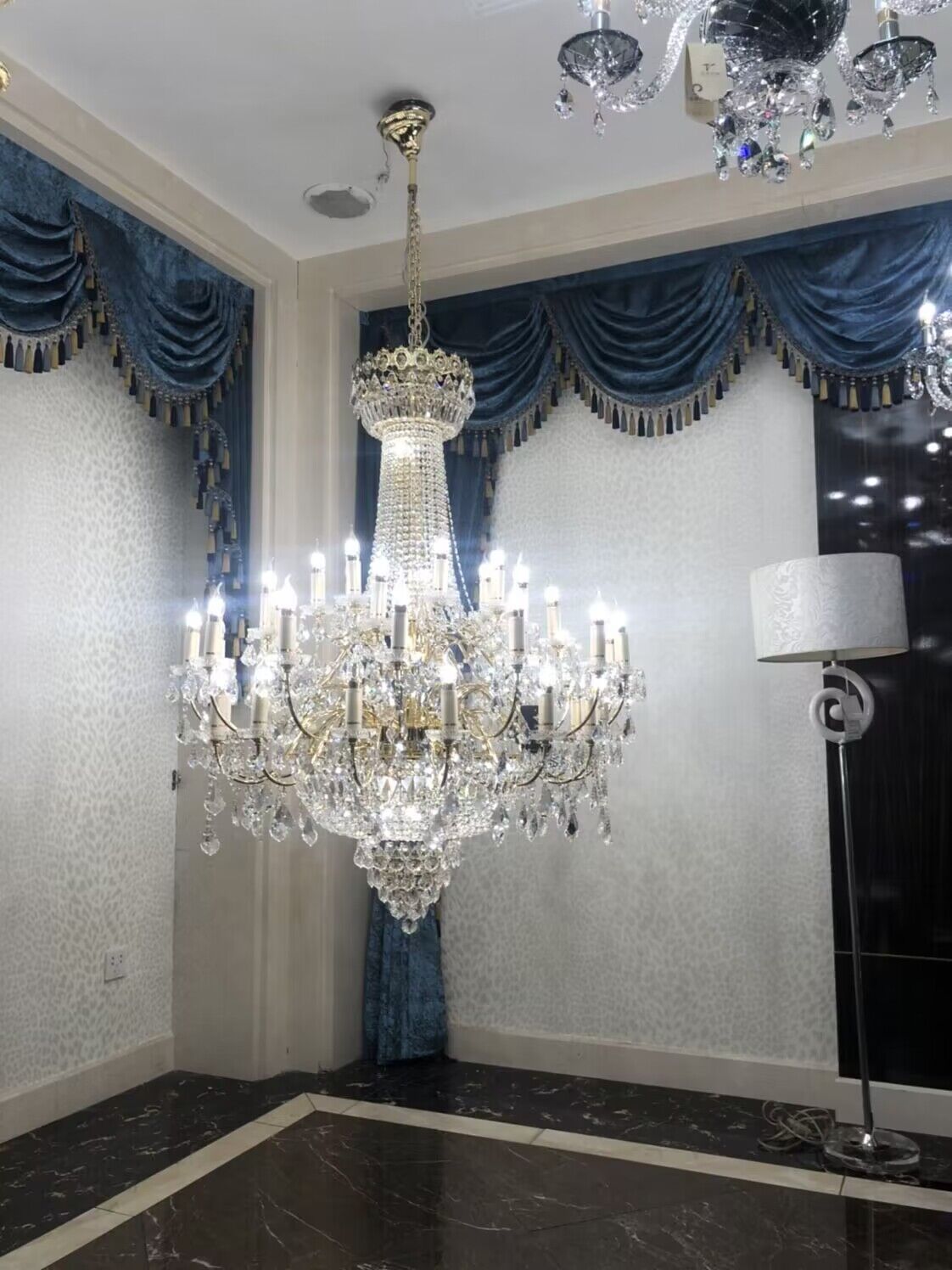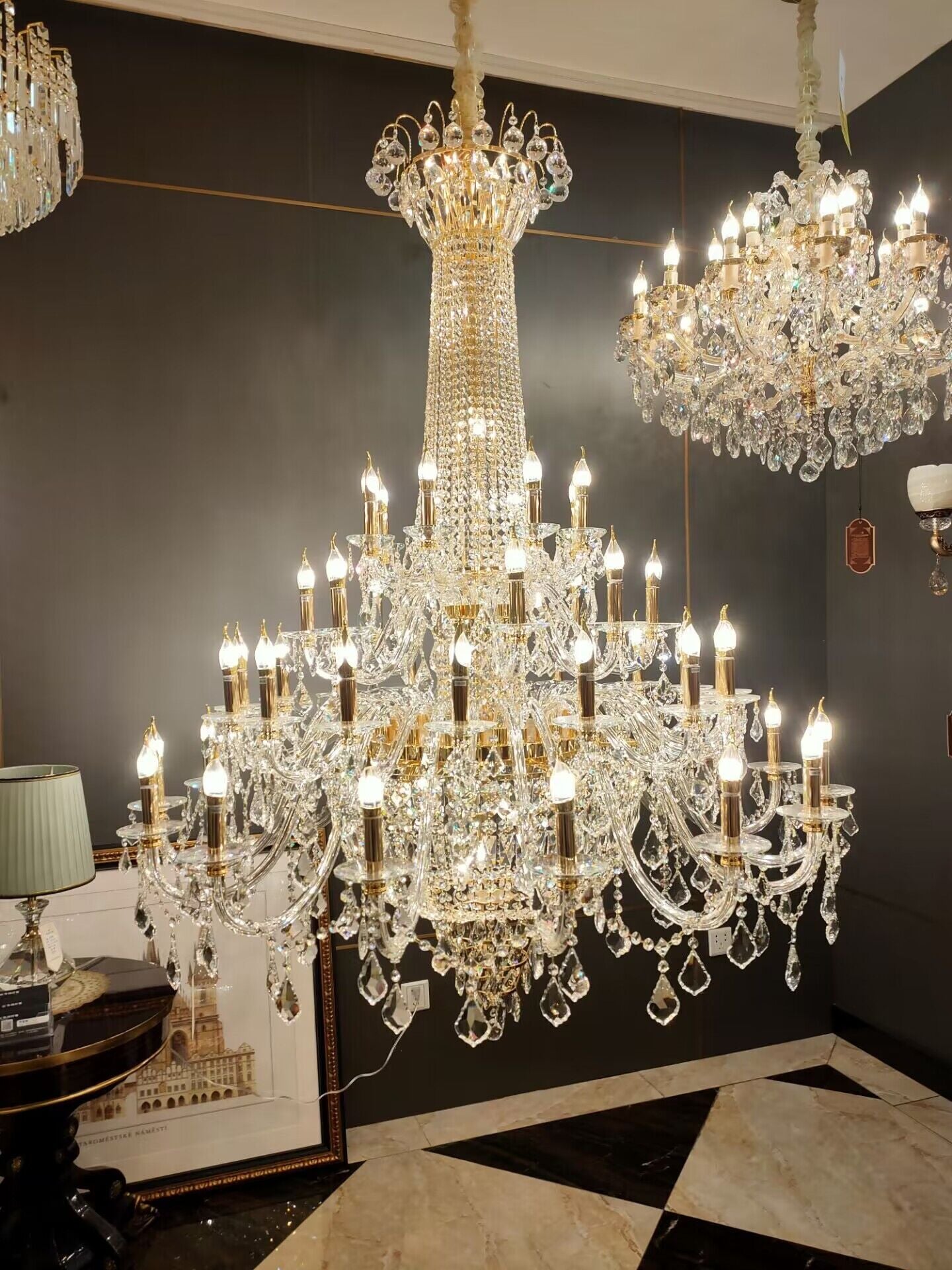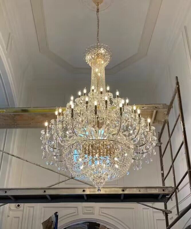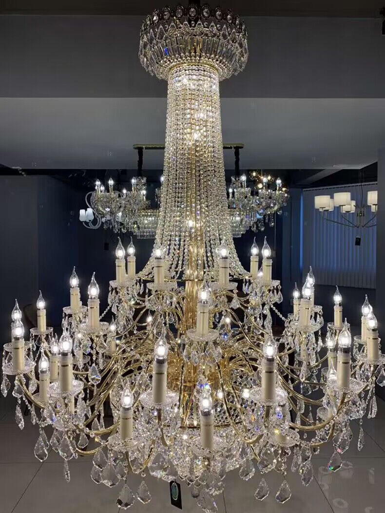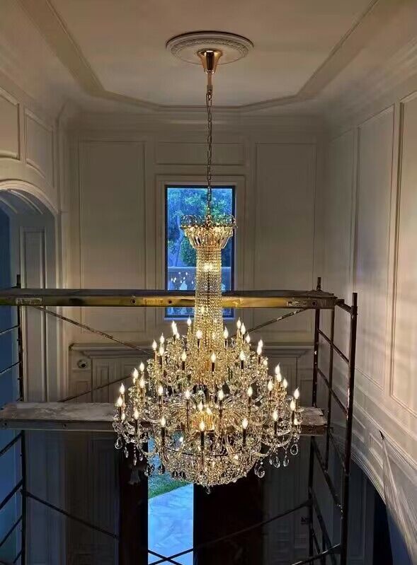 Lustre à bougie Empire traditionnel doré extra large en cristal pour escaliers/foyers
