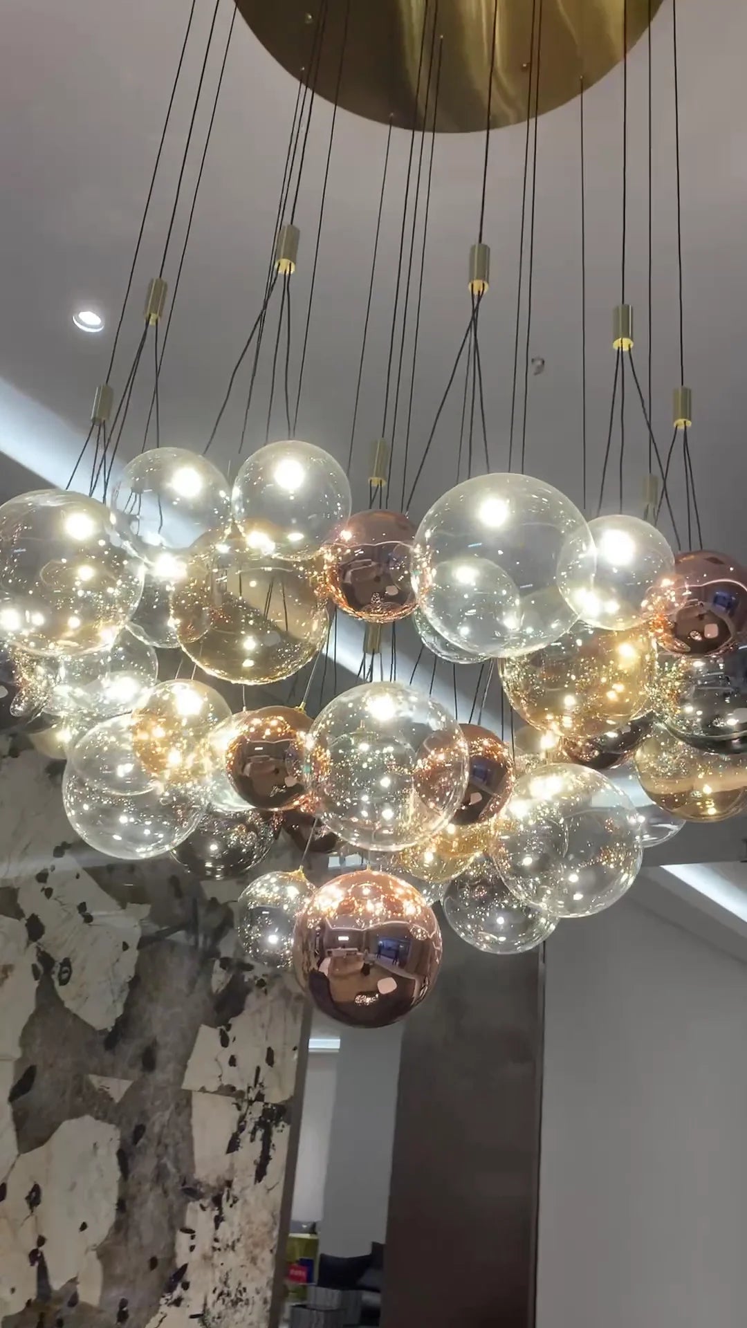 Sublimez votre espace de vie avec notre lustre italien en forme de boules de verre. Inspiré des bulles flottantes, ce modèle met en valeur des fils de fer élégants qui soutiennent solidement les boules transparentes. Profitez de la magie de l'éclairage LED et choisissez parmi une variété de finitions pour créer l'ambiance idéale.