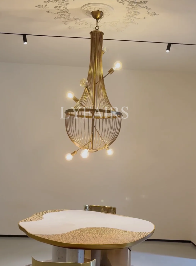The Luxury Minimalist Golden Cage Chandelier offers a dreamy, elegant glow with its refined golden frame and sleek design, adding luxurious ambiance to any space.