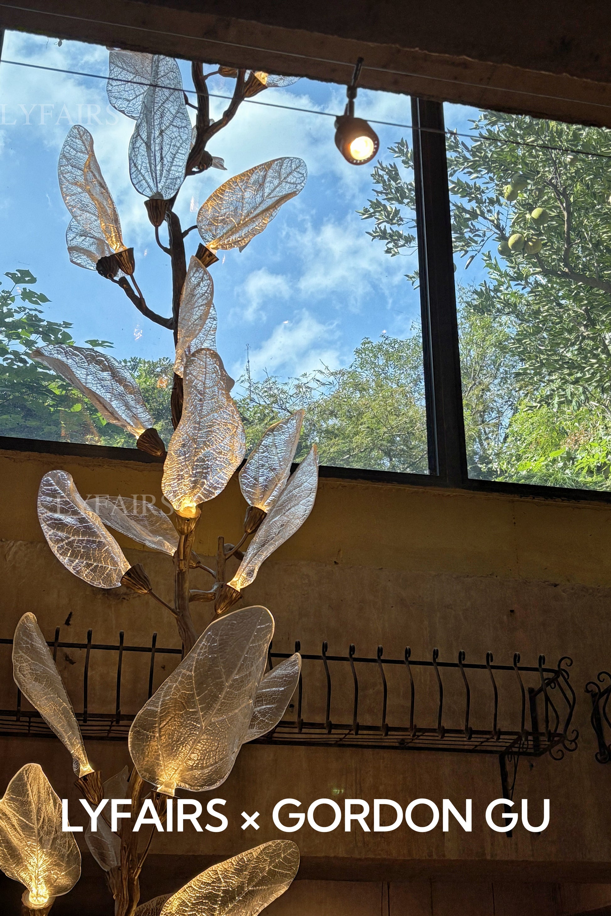 Inspired by nature's most vital symbol, this ceiling lamp reimagines the leaf as an artistic statement. The design magnifies the organic forms, contours, and delicate vein patterns found in nature, celebrating botanical beauty through sculptural enlargement. Optical refraction and reflection effects enhance the artistic vision, casting dynamic light and shadow that evoke the interplay of sunlight through foliage. This collaboration between LYFAIRS and Gordon Gu merges art, fashion, and natural inspiration into a sophisticated fixture that transforms any space. The result is a luminous meditation on vitality—a piece that infuses interiors with the symbolic resonance of growth, renewal, and enduring life force.