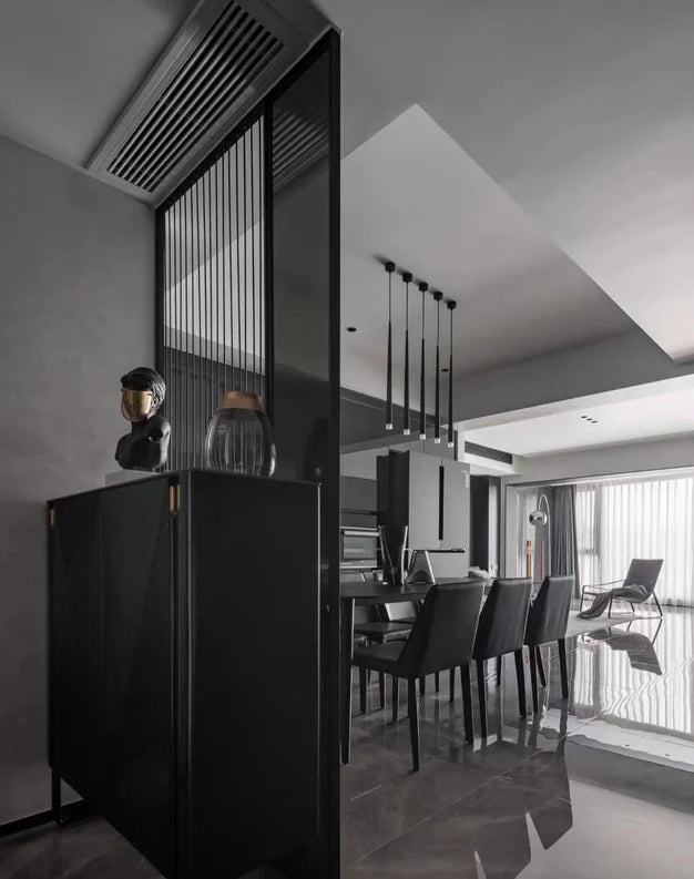 Le corps de ce lustre conique minimaliste est en fer, peint et dépoli d'un noir raffiné, résistant à la corrosion, à la rouille et durable. Ce lustre est disponible en deux versions : ronde et rectangulaire. Le modèle rond est idéal pour les escaliers ou les étages supérieurs du salon, tandis que le modèle rectangulaire peut être utilisé pour décorer la salle à manger ou placé près du lit pour un éclairage nocturne.