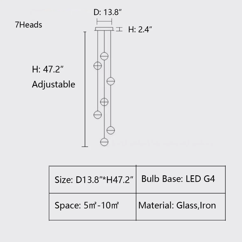 This chandelier is made of glass and iron materials. It is designed as a unique shape with a round glass shade containing many bubbles inside. The bubble glass is fantastic and clear. The light transmission is even and gentle, without harshness, bright and comfortable. It gives an elegant, unconventional and romantic style and makes the visual more three-dimensional. Whether as a decorative or lighting fixture in the stairwell,it is capable of making a statement.Perfect to stairs,high-ceiling room,hotel lobby,etc.