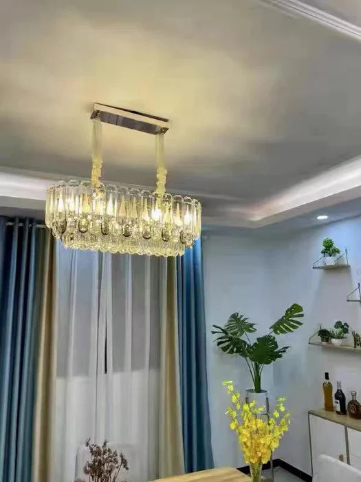Lustre à plusieurs niveaux en cristal transparent surdimensionné, idéal pour le salon, la salle à manger ou la chambre à coucher