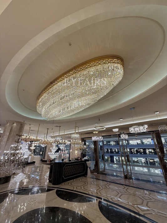 Lampadario ovale in cristallo a filo Gold Era per hotel/ristorante/villa