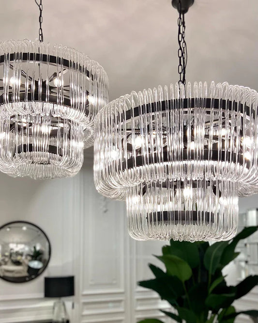 Lampadario moderno di lusso a 2 livelli in vetro