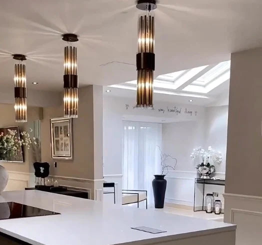 Lampadario di cristallo a spirale lineare di lusso per sala da pranzo/isola della cucina