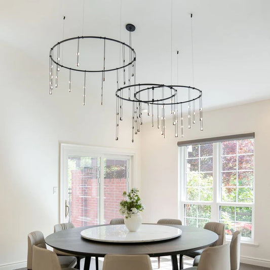 Lampadario LED verticale con anelli multistrato dal design moderno