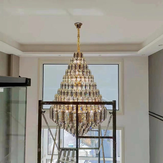 Lampadario di cristallo a nido d'ape a più livelli di lusso per soffitti alti