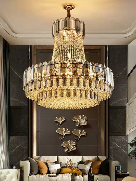 Lampadario di cristallo di alta qualità per soggiorno, lampadario di lusso duplex per corridoio
