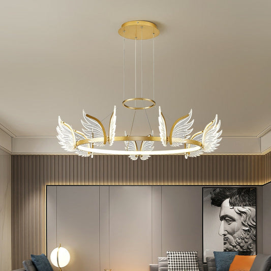 Lampadario moderno a LED con due anelli a forma di farfalla per soggiorno, soffitto d'ingresso, finitura oro/nero
