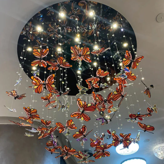 Lampadario moderno a farfalla in vetro Tiffany per sala da pranzo/isola cucina/soffitto basso