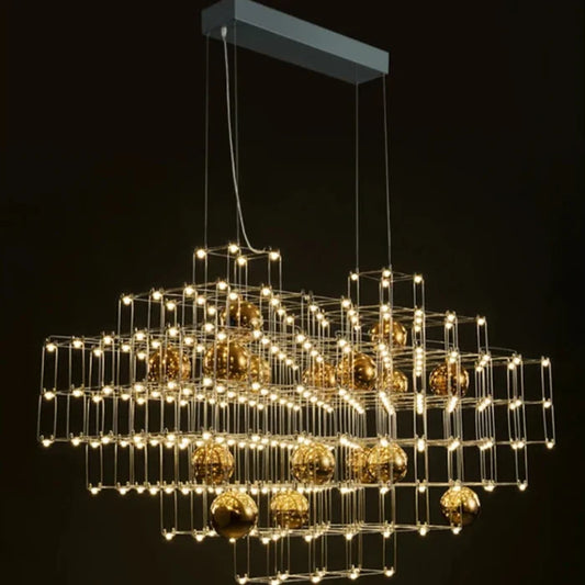 Lampadario moderno a cubo tridimensionale in acciaio inossidabile