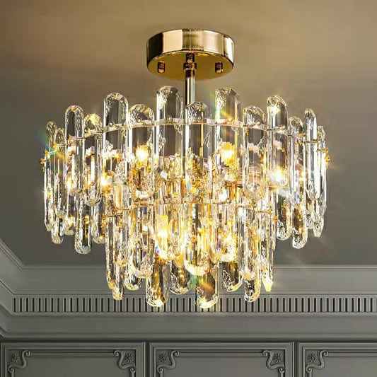 Lampadario moderno a due strati in cristallo per soggiorno, plafoniere economiche per tavolo da pranzo rotondo