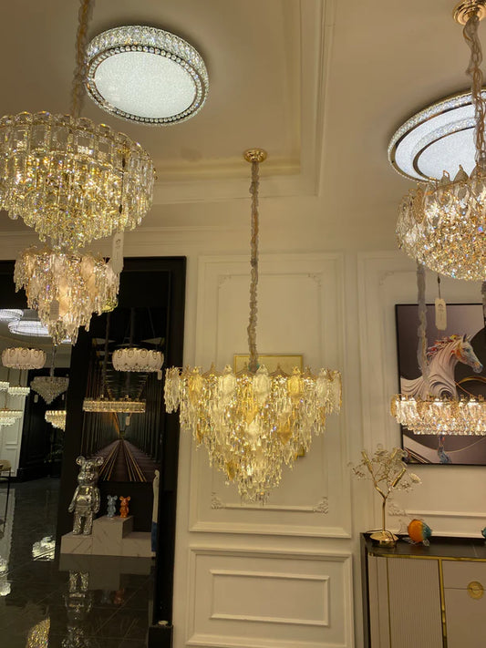 Lampadario a più livelli in cristallo a scaglie per camera da letto/soggiorno/sala da pranzo