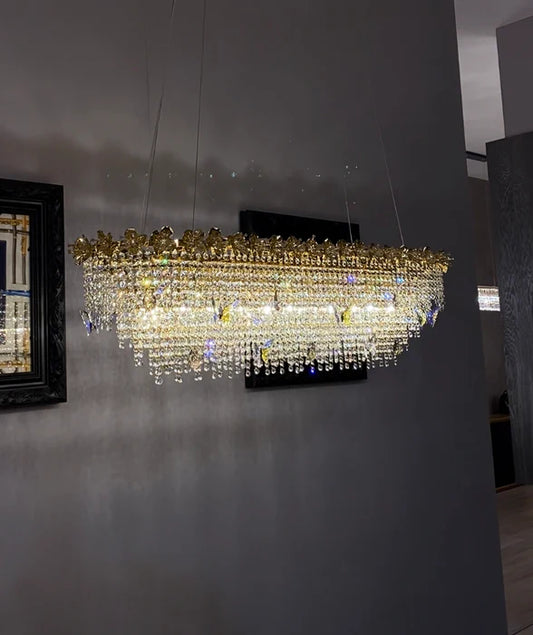 Nuovo lampadario di cristallo moderno di lusso rettangolare con design artistico a farfalla per isola cucina/sala da pranzo