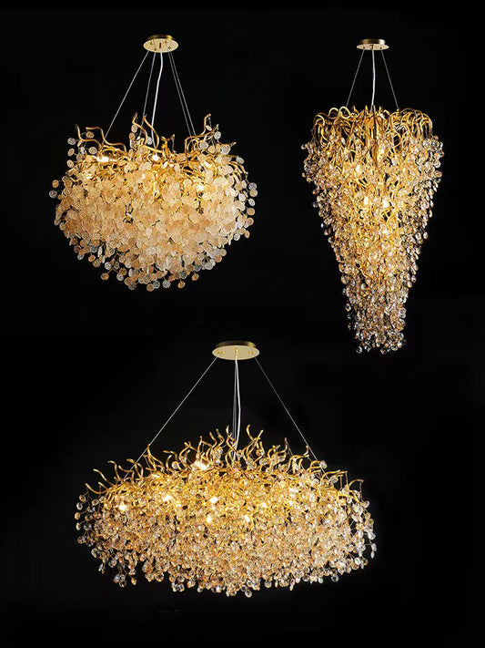Nuovo lampadario di cristallo creativo di lusso a più livelli con finitura oro champagne per soggiorno/sala da pranzo/scale/ingresso