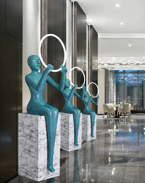 Lampada da terra a forma di statua seduta nera/blu
