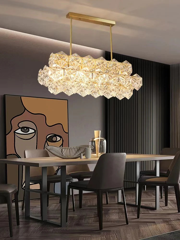 Lampadario moderno rettangolare in cristallo per tavolo da pranzo/isola cucina/bar