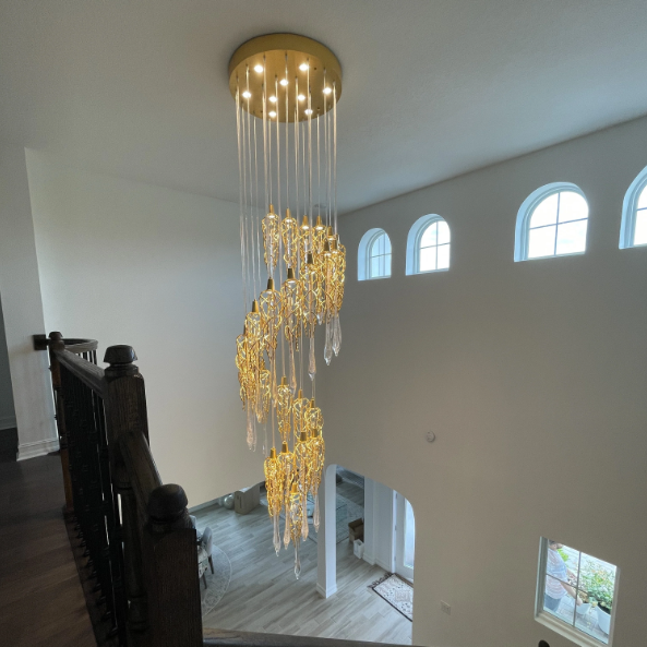 Lampadario a sospensione in cristallo con paralume a spirale extra lungo e goccia di pioggia per scale/ingresso/soggiorno