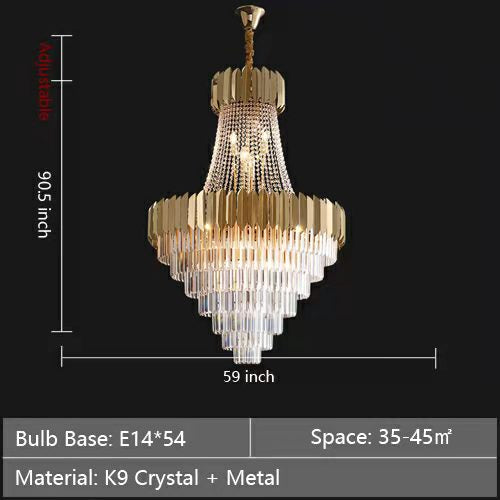 Lampadario di cristallo dorato per corridoio, lampada da soffitto di lusso per soggiorno e scale
