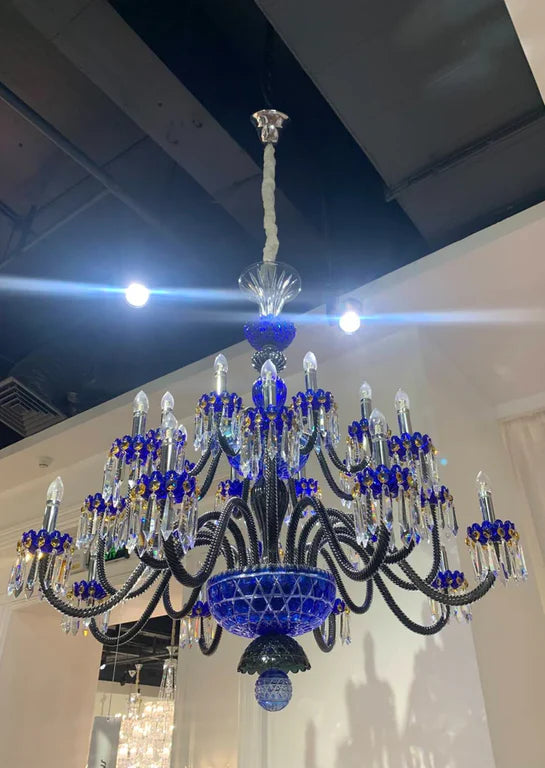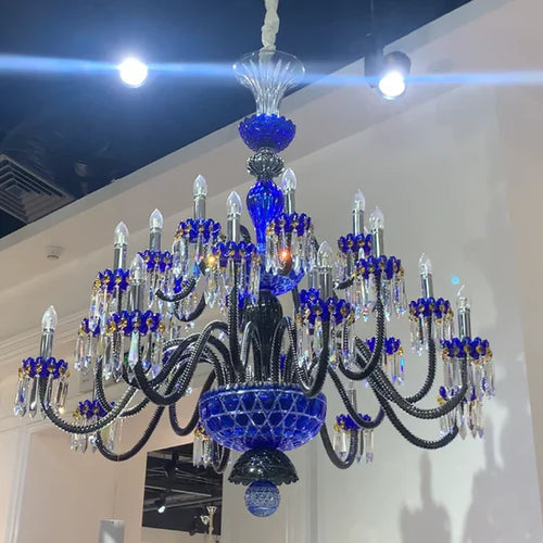 Lampadario di lusso in cristallo blu e nero con candela per soggiorno/camera da letto/sala da pranzo