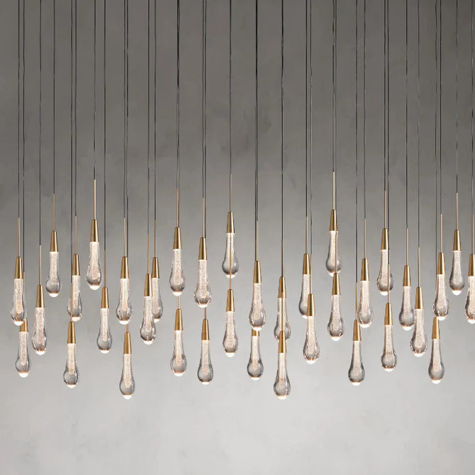 Lampadario moderno in cristallo lineare a cascata con gocce di pioggia per sala da pranzo/isola della cucina
