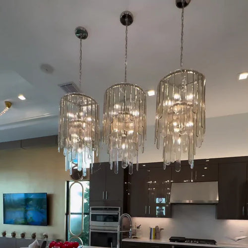 Lampadario moderno in vetro a più livelli per sala da pranzo/soggiorno/isola della cucina