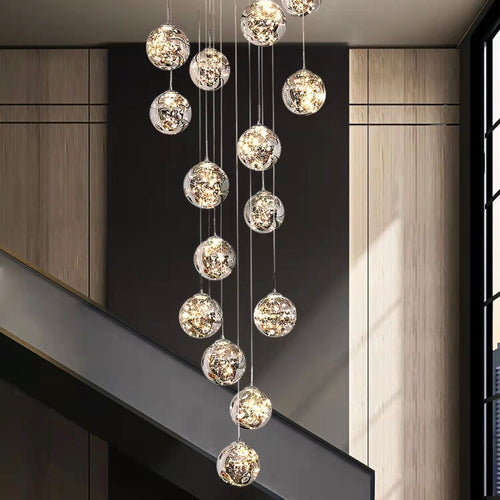 Lampadario moderno a forma di globo con luce stellare per ingresso, lampadario a sfera in vetro trasparente con decorazione a soffitto per soggiorno
