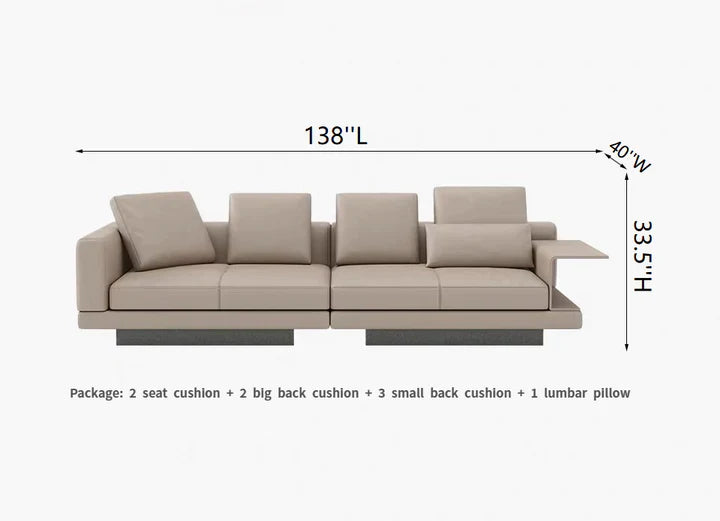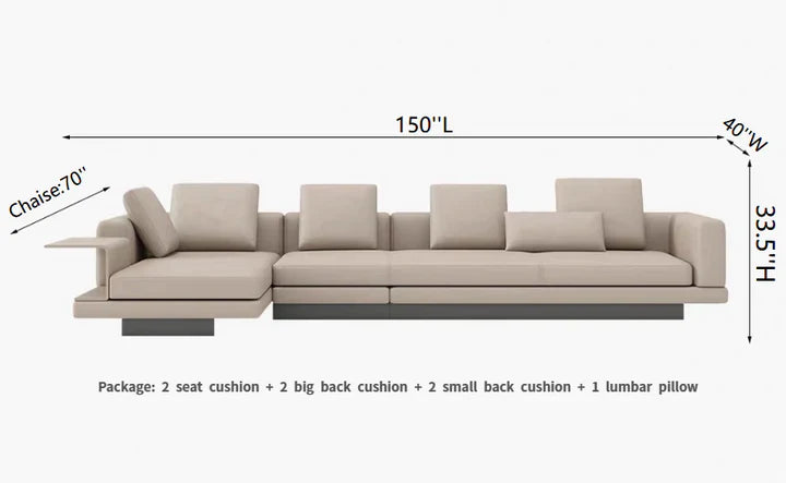 Il divano componibile è progettato per offrire il massimo comfort. L'imbottitura in spugna ad alta densità e resilienza garantisce un'esperienza di seduta rilassante con eccellenti proprietà anti-pressione. L'ampia seduta può essere facilmente utilizzata come letto aggiuntivo. Oltre all'aspetto estetico, è incluso un ripiano sospeso per riporre libri e altri oggetti. Le eleganti gambe in acciaio inox spazzolato offrono un'estetica accattivante e una stabilità affidabile.