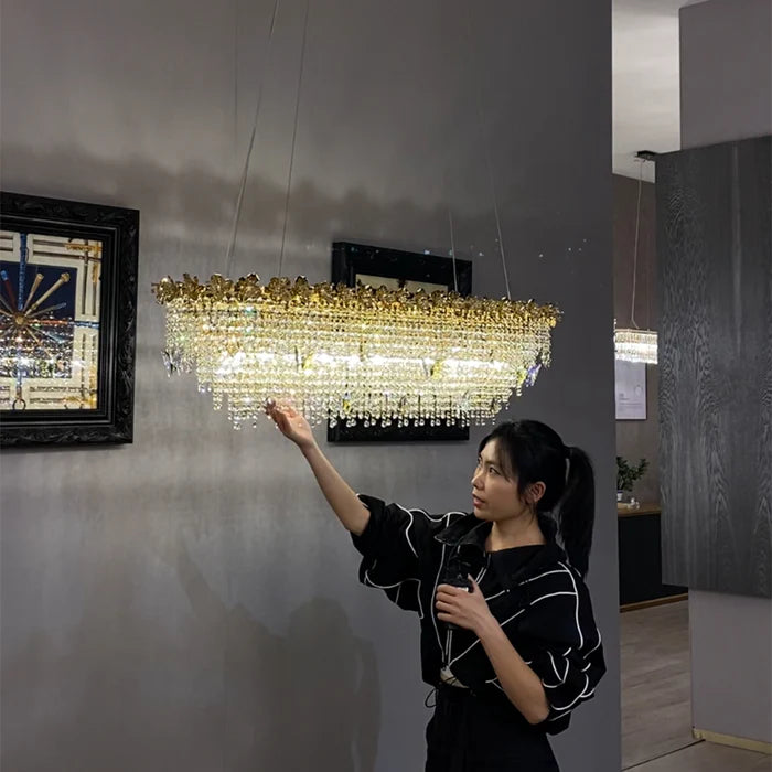 Nuovo lampadario di cristallo moderno di lusso rettangolare con design artistico a farfalla per isola cucina/sala da pranzo