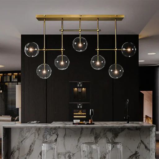 Lampadario in vetro trasparente a sfera nordico con finitura nera/oro per sala da pranzo/isola della cucina