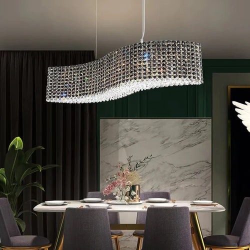 Lampadario di cristallo curvilineo di lusso di grandi dimensioni per sala da pranzo/isola della cucina/soggiorno