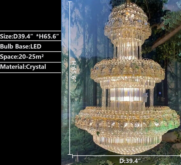 Golden Era Grand Cascade Fountain Empire 3-Tier Crystal Chandelier for High-ceiling