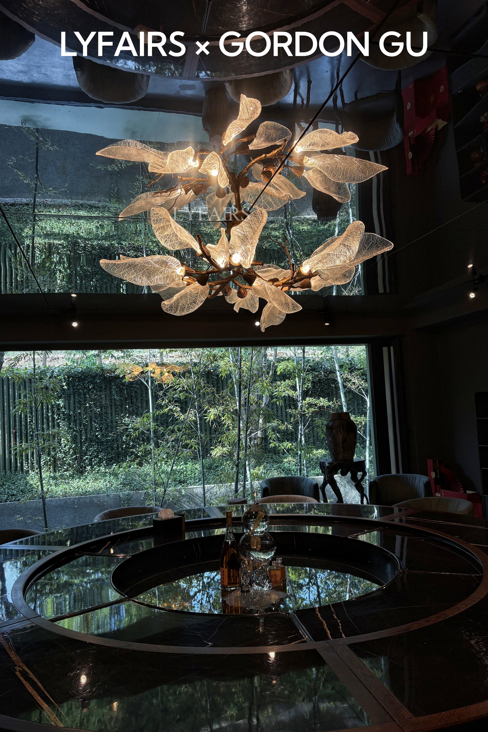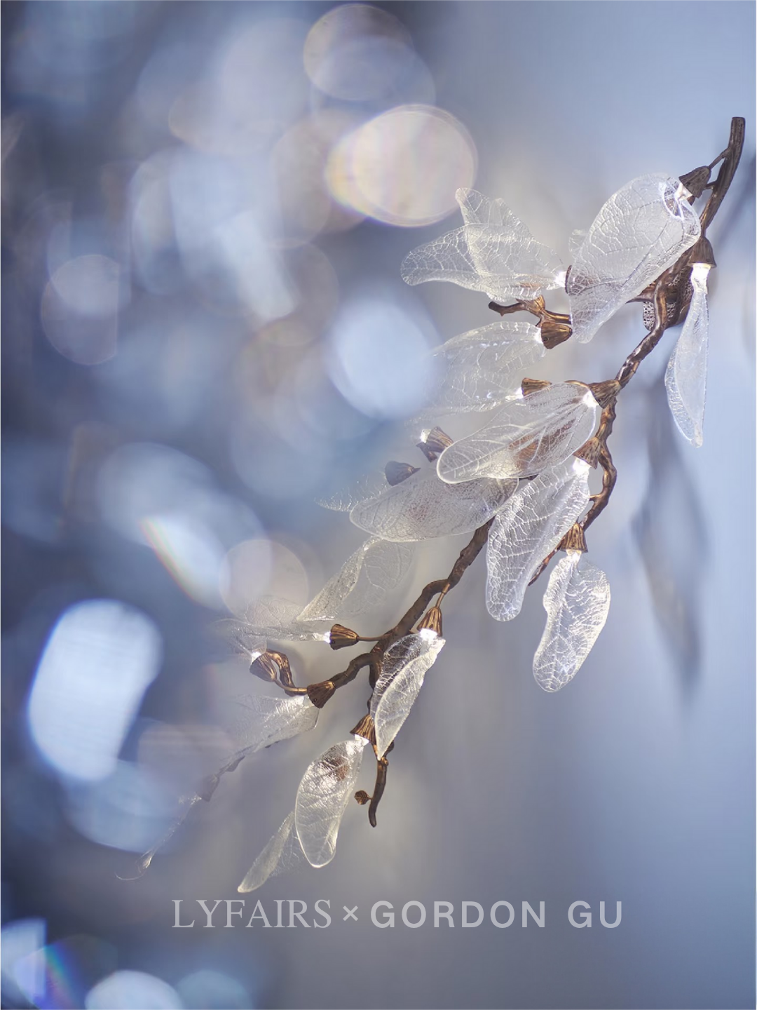 Inspired by nature's most vital symbol, this ceiling lamp reimagines the leaf as an artistic statement. The design magnifies the organic forms, contours, and delicate vein patterns found in nature, celebrating botanical beauty through sculptural enlargement. Optical refraction and reflection effects enhance the artistic vision, casting dynamic light and shadow that evoke the interplay of sunlight through foliage. This collaboration between LYFAIRS and Gordon Gu merges art, fashion, and natural inspiration into a sophisticated fixture that transforms any space. The result is a luminous meditation on vitality—a piece that infuses interiors with the symbolic resonance of growth, renewal, and enduring life force.